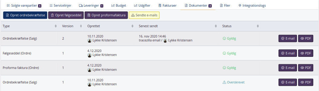 tracezilla tilbyder en række dokumentskabeloner. Som noget nyt er der kommet to nye typer dokumenter. Det er en ny type af følgeseddel og en ny type proformafaktura.