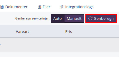 Klik på Genberegn for at opdatere ordren, så de automatiske servicelinjer tilføjes.