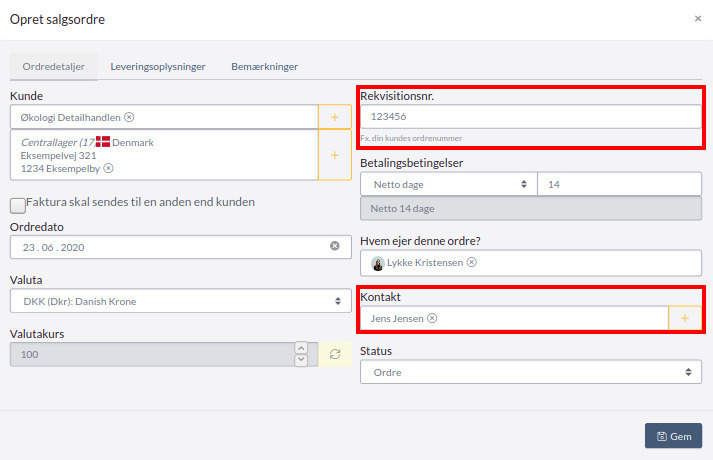 2) Opret salgsordren med de relevante oplysninger