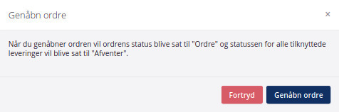 Når du klikker på Genåbn ordre på en faktureret salgsordre, kommer følgende meddelelse frem i dialogboksen: