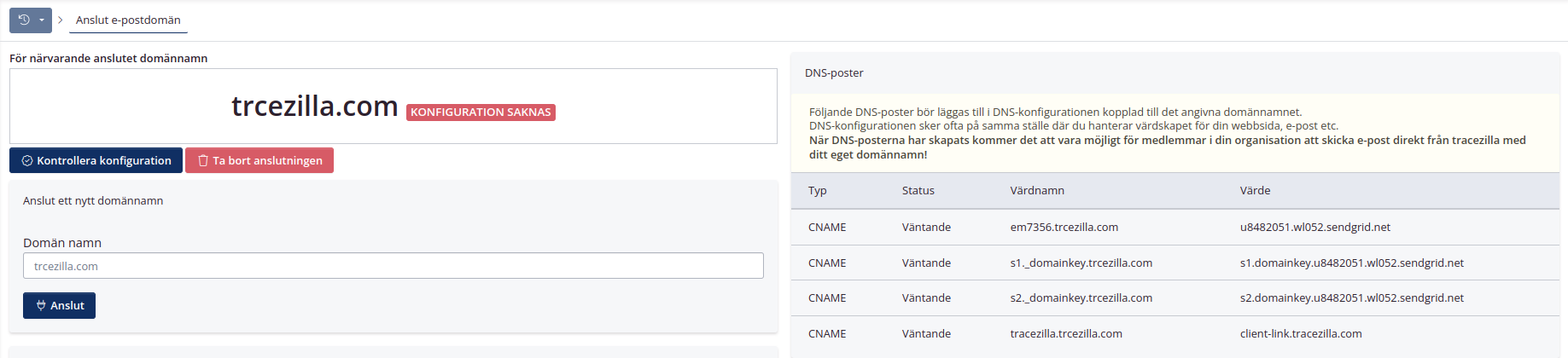 Nu ser skärmen ut så här (i exemplet nedan används tracezilla.com som domännamn):